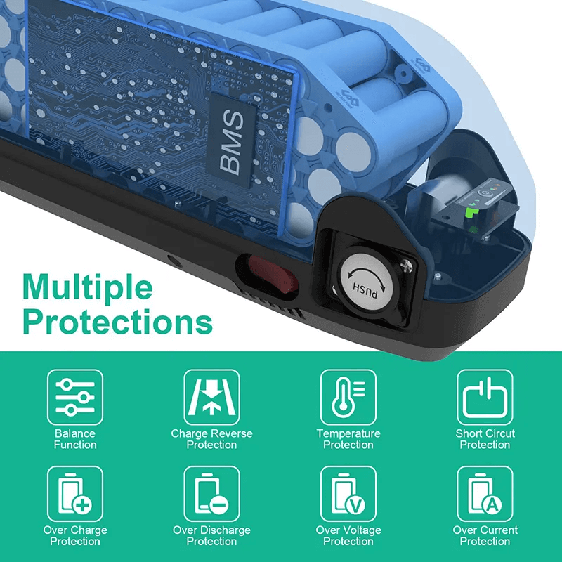 Sisemine trükkplaat pakub kaitset ülelaadimise, tühjenemise ja lühise eest, jälgides üht rakkude rida. Samuti võimaldab see igal akul saada sõltumatu tasakaalustusfunktsiooni